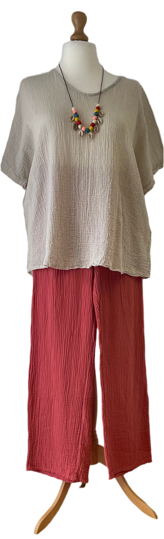 Sarah tempest straight leg waffle fabric trousers with elasticated waist