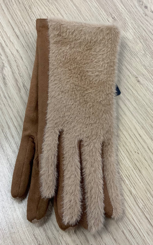 Faux suede/ faux fur gloves