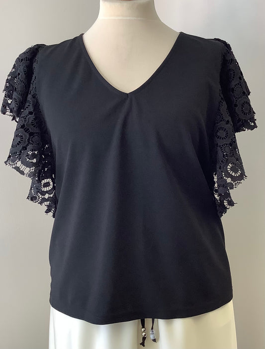 Malissa J V Neck T Shirt with Broderie Sleeves
